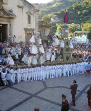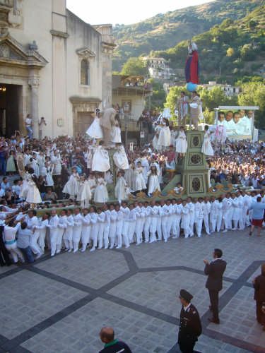 Giovanissimo impersonò il Padre Eterno nella sacra rappresentazione dell’Annunciazione che si svolgeva e si svolge ancora oggi ogni cinque anni a Fiumedinisi, in agosto, per la Grande Festa della Vara. Vara è il termine utilizzato in Sicilia ed in alcune regioni del sud per indicare il carro trionfale su cui vengono poste le statue per essere portate in processione. Sulla macchina votiva prendono posto, oltre al vescovo e all’arciprete, anche tre bambini scelti dalla popolazione locale che rappresentano il Padre Eterno, l’Angelo Gabriele e la Madonna. La grande macchina votiva viene portata a spalle da più di cento devoti vestiti di bianco e senza scarpe, lungo la via principale del paese.