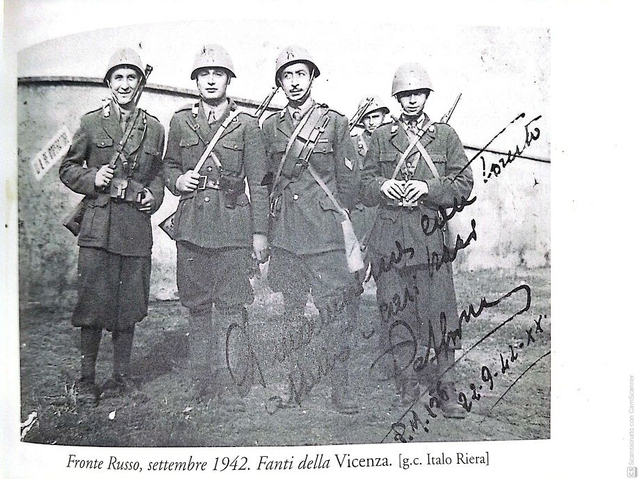 Partii per la Russia dalla stazione di Brescia. Facevo parte della Divisione di fanteria Vicenza, 277° Reggimento, III Battaglione, 11ª Compagnia. La nostra divisione doveva avere compiti di presidio, io ero tra i più giovani: la maggior parte dei miei commilitoni era trentenne ed alcuni anche più anziani. Il nostro armamento era prevalentemente individuale, l'equipaggiamento scarso: cappotto di lana autarchica, fasce, scarponi leggeri. Tutto questo si sarebbe rivelato tremendamente tragico. La mia Compagnia era costituita da circa 220 uomini ma dopo la disastrosa ritirata rientrammo in Italia solo in 19. Io ero fra questi fortunati! In Russia la Vicenza era schierata alle spalle dei reparti alpini che si trovavano sul fronte del Don. Successivamente venne spostata sulle posizioni della Julia, che era impegnata a tamponare la falla creatasi nelle linee della Cosseria.